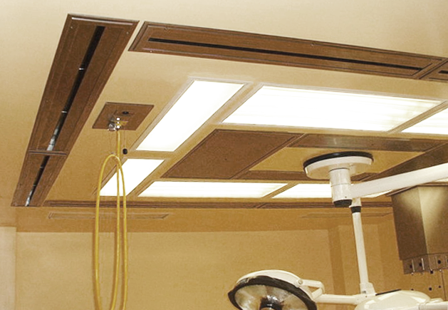 The SSEPD Series Perimeter Slot Diffusers are specially designed to provide an air curtain for operating rooms. The SSEPD Series unique slot design creates a continuous curtain of air, angled outwards 15º, that encloses the operating area and minimizes the possibility of contaminated air entering the surgical area. The double slot design creates a uniform velocity curtain that minimizes entrainment of contaminated air into the curtain air stream. It also creates a wider velocity profile with less turbulence and hence less induction over similar two slot designs. The face design also incorporates longitudinal deflectors that horizontally deflect a small amount of air lengthwise thereby joining sections and corners with a truly continuous curtain, resulting in enhanced isolation of the surgical area.