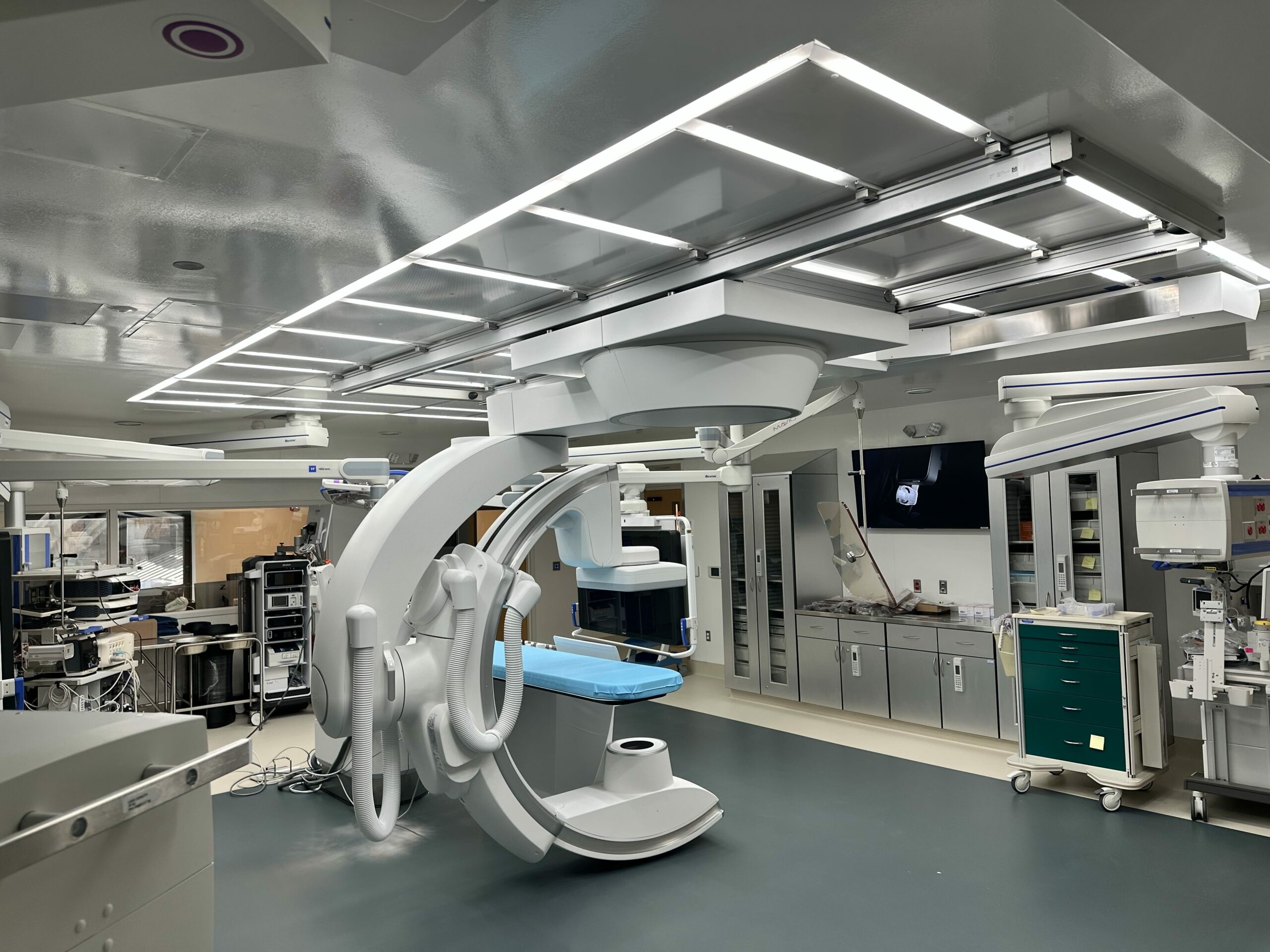 To meet surgical lighting needs, powerful LED lights (tunable and dimmable) can be built into each diffuser, eliminating the need for traditional hanging lights, freeing up additional ceiling space for other equipment. Plus, as an optional feature, green lights can be included on the same board — requiring half the number of drivers, less wiring and less time and effort during installation.