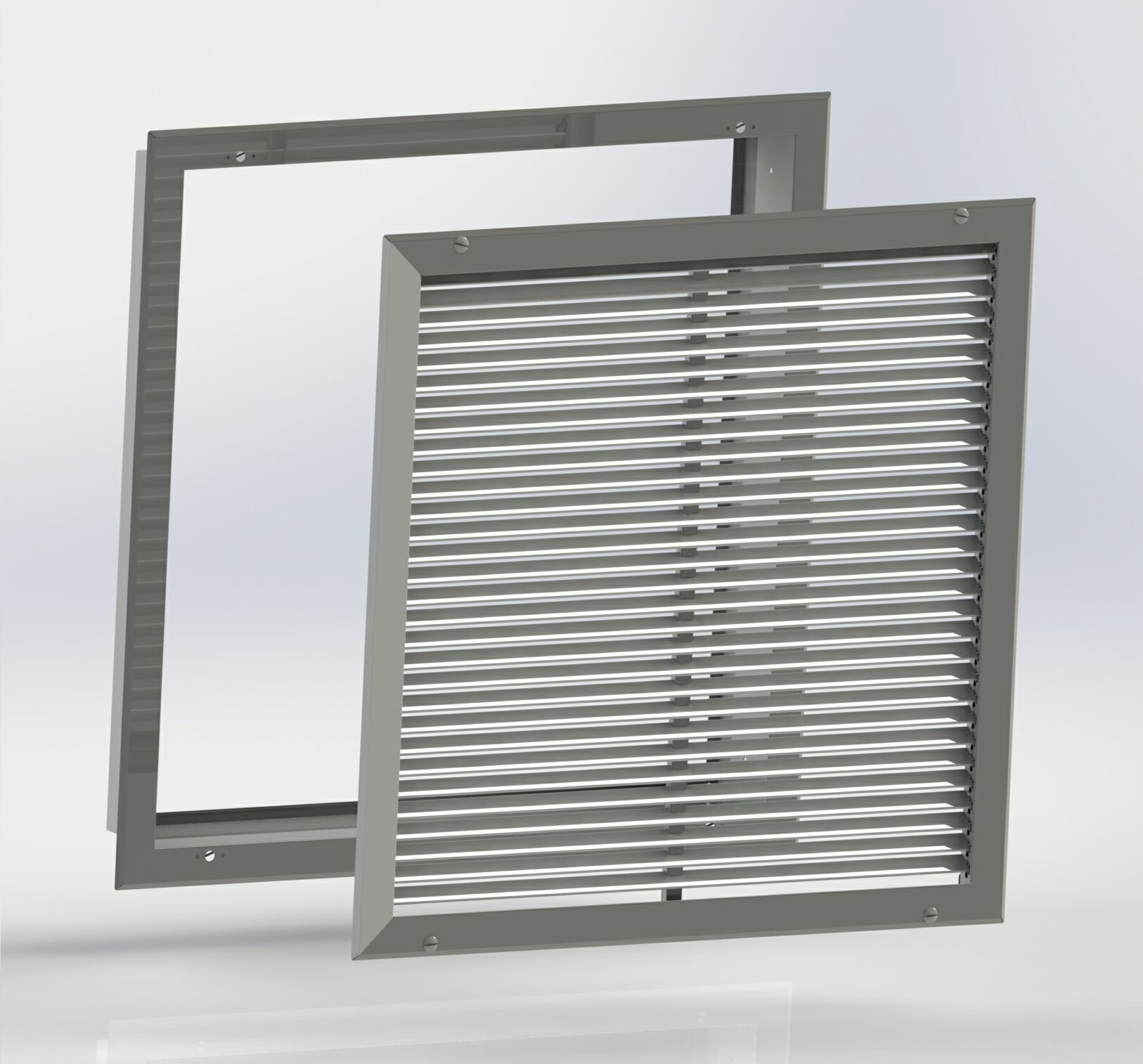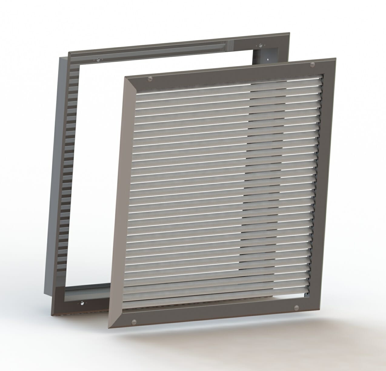 The SSFG-EC Series ½” x ½” x 12″ Egg Crate Filter Grille is hinged in our 1000 Plaster Frame and secured with low profile ¼-turn fasteners. The removable filter grille allows easy access to filters or mechanical equipment. Specify with filter clips for filter applications; 1? filter depth is standard, with optional filter depths up to 2″.