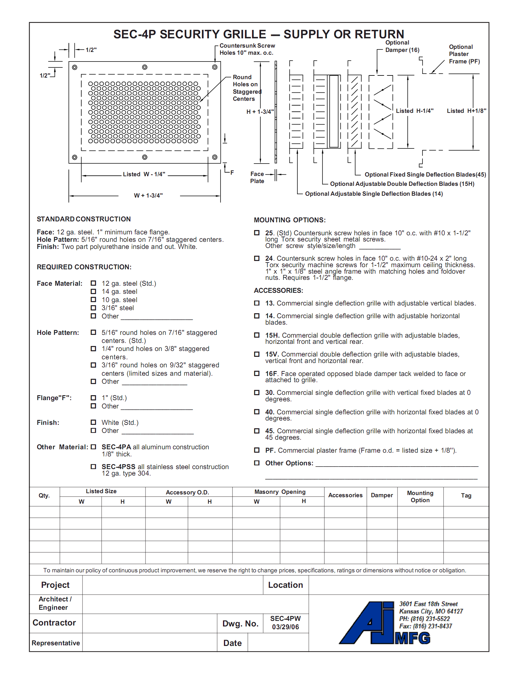 - Face: 12-gauge Steel, 1″ Minimum Face Flange